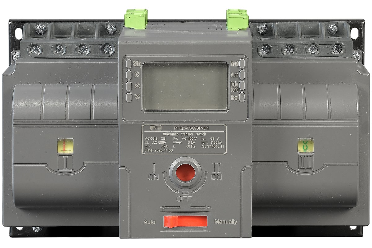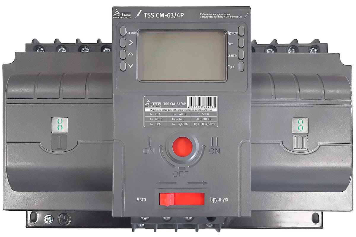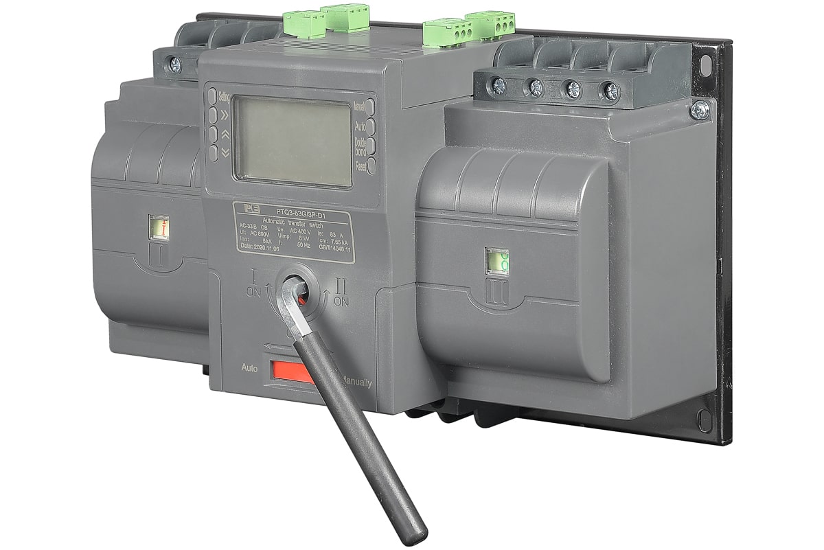 Компактный рубильник ввода резерва со встроенным программируемым контроллером. Идеальное решение для частного дома или небольшого здания с мощностью 23,9 кВт (4P 3-фазное питание). Способен в одиночку заменить шкаф АВР и блок вводных автоматов во многих ситуациях.