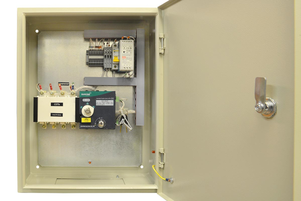 Автоматический ввод резерва (АВР) применяют для генераторных установок, которые используются в качестве резервного источника электрической энергии. Основной функцией АВР является коммутация источников электроэнергии с потребителями энергии. АВР имеет минимум два ввода: 1 ввод (основной) – ввод от основного источника электроэнергии, 2 ввод (резервный) – ввод от резервного источника электроэнергии. Вводы взаимно блокируют друг друга – один из них замкнут, другой разомкнут. В нормальном положении основной ввод замкнут и от постоянного источника (как правило это линии электропередачи) происходит электроснабжение потребителей. В случае попадания электропитания (или выхода качества электроэнергии за рамки установленных значений) система автоматики производит запуск генераторной установки. После выхода установки на рабочий режим, АВР производит коммутацию потребителя электроэнергии на резервный источник – генераторную установку. При появлении электроэнергии надлежащего качества на основном вводе, АВР (после установленной временной задержки) производит обратную коммутацию потребителя электроэнергии на основной источник энергии. Система автоматики производит выключение генераторной установки. АВР является отдельным, самостоятельным устройством, не являющимся составной частью генераторной установки. Если генераторная установка изначально не имела АВР, дооборудование установки можно произвести в любое время.