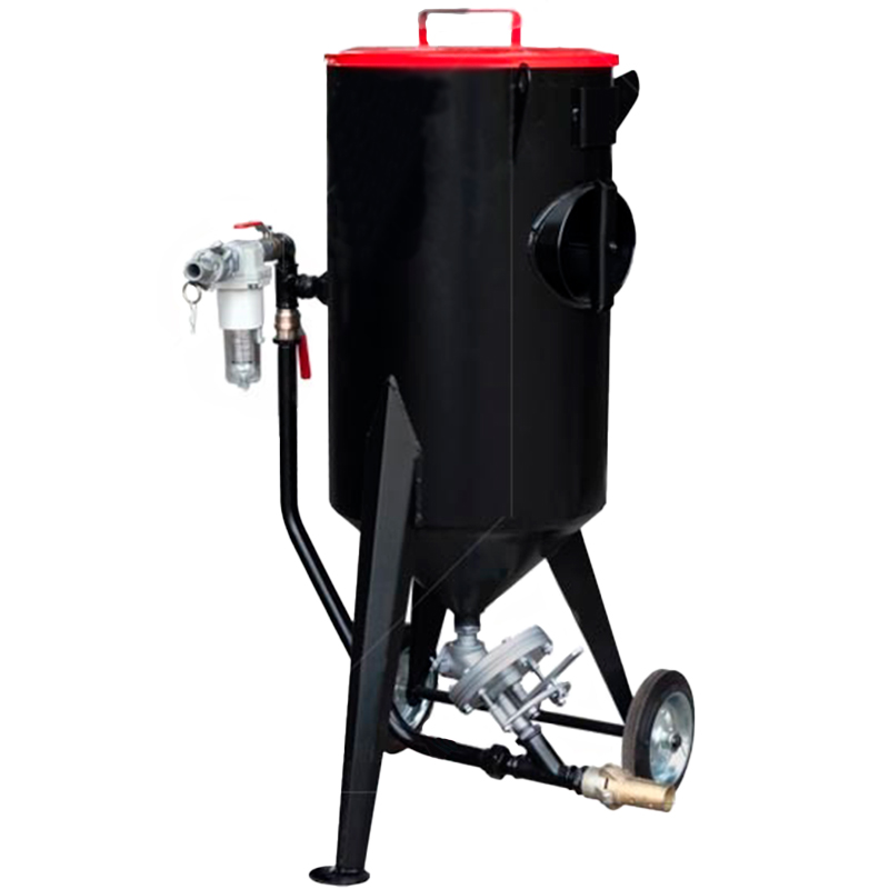При своих габаритах 1450x1000x850 мм и общем весе в 105 кг (без абразива) модель напорного типа Zitrek DSMG-200 работает при помощи двух специалистов-пескоструйщиков. Объем бака для абразива составляет 200 литров.