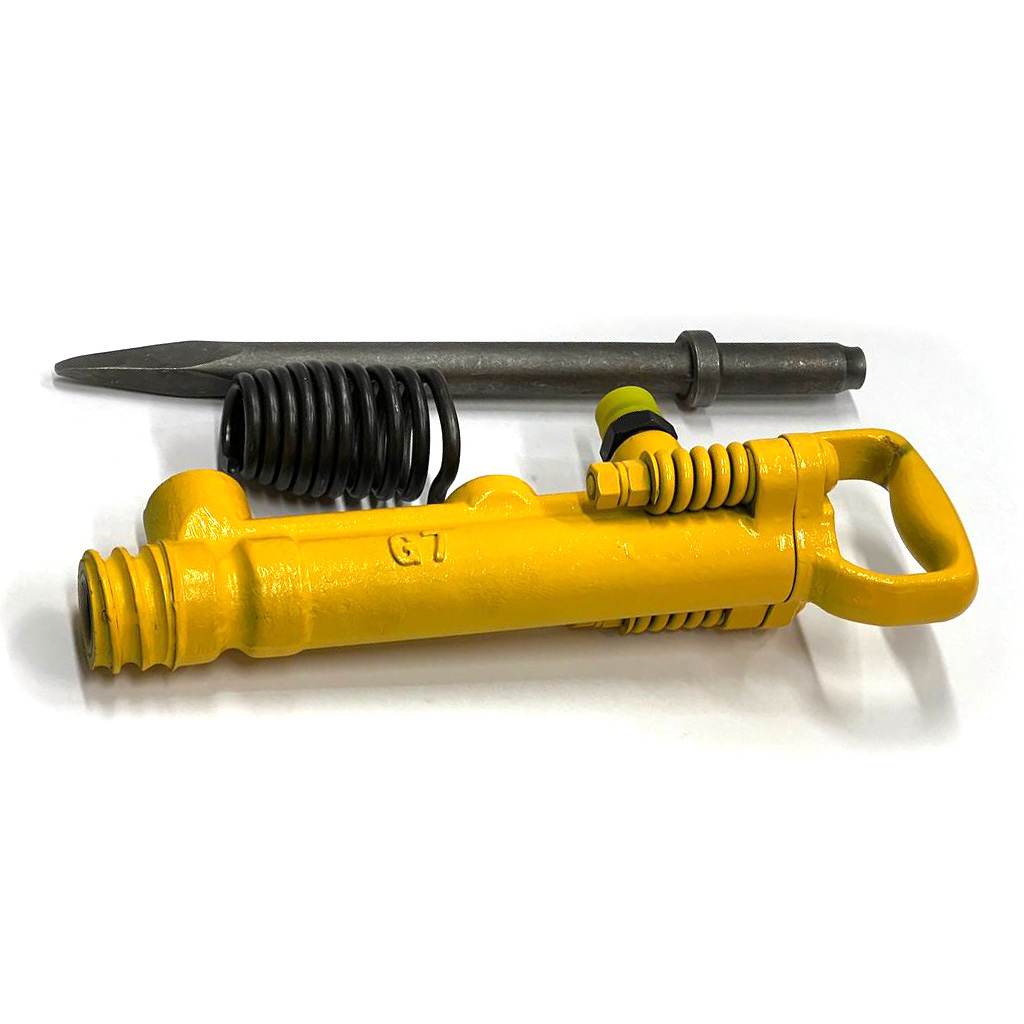 Пневматический отбойный молоток TCA7 изготовлен по японской технологии и приводится в действие сжатым воздухом. Его отличительные особенности - легкий вес, небольшой размер, хорошая энергия удара, высокая частота, цельный кованый корпус, который трудно повредить. Молот в основном используется для дробления бетона, разрушения мерзлой почвы и льда, ремонта дорог, рытья котлованов, рытья траншей, добычи мягких пород, угля и т.д. Малый вес позволяет работать с молотом на весу в горизонтальном положении для разрушения стен.